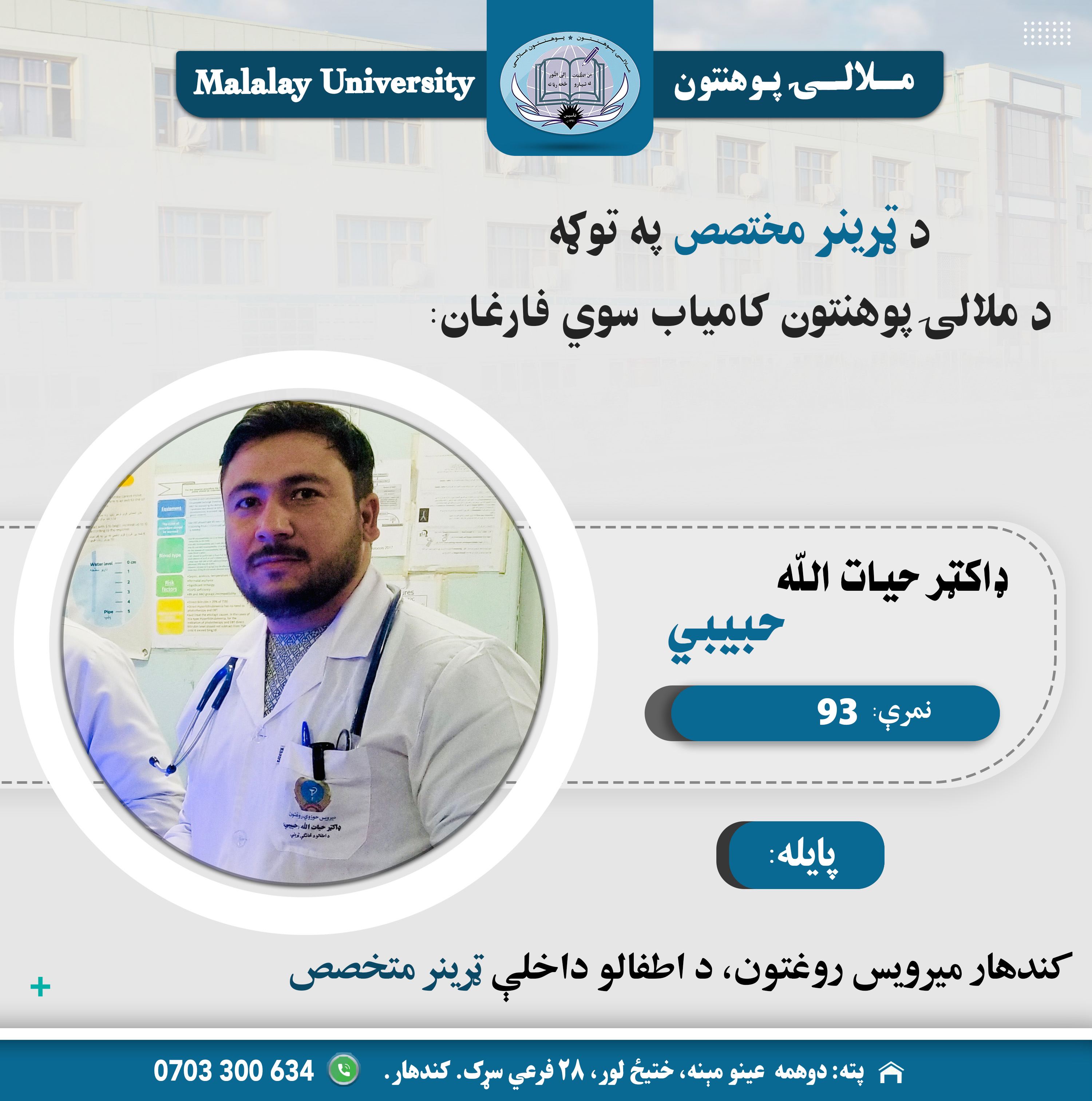 ...د ملالۍ پوهنتون د طب پوهنځي د لومړۍ دورې فارغ ډاکټر اسد الله اسد د طبابت نړۍ تر ټولو لويې ازمویني USMLE یا د متحده ایالاتو د طبي لایسنس ازمویني له اول.....