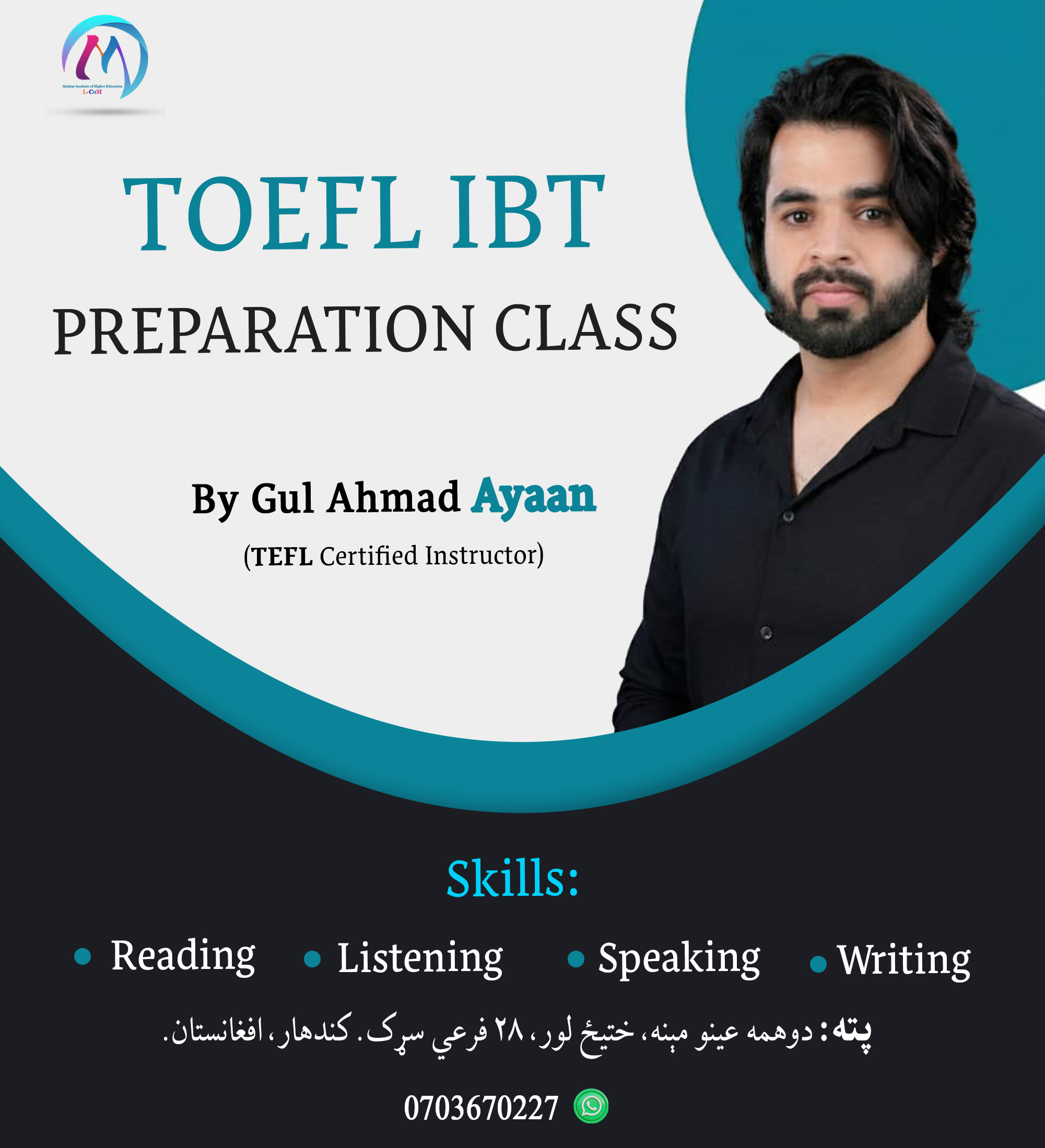 ...TOFEL IBT Preparation By Gul Ahmad Ayaan (TEFL Certified Instructor) Skills: Reading, Listening, Speaking, Writing د وخت او نورو اړینو موضوعاتو ل.....