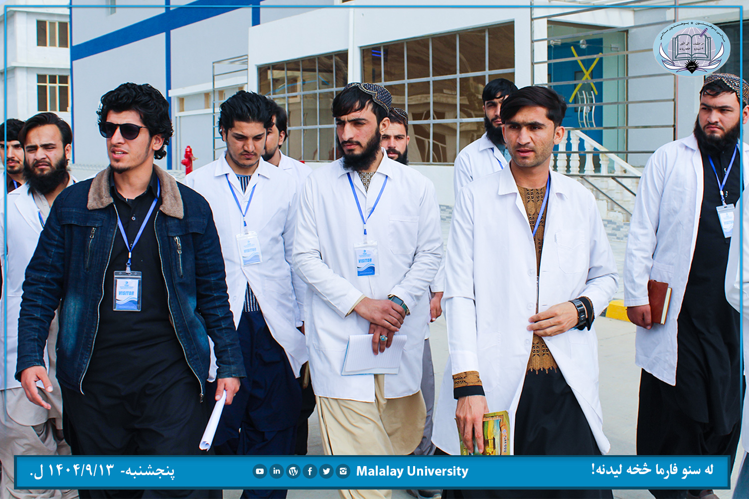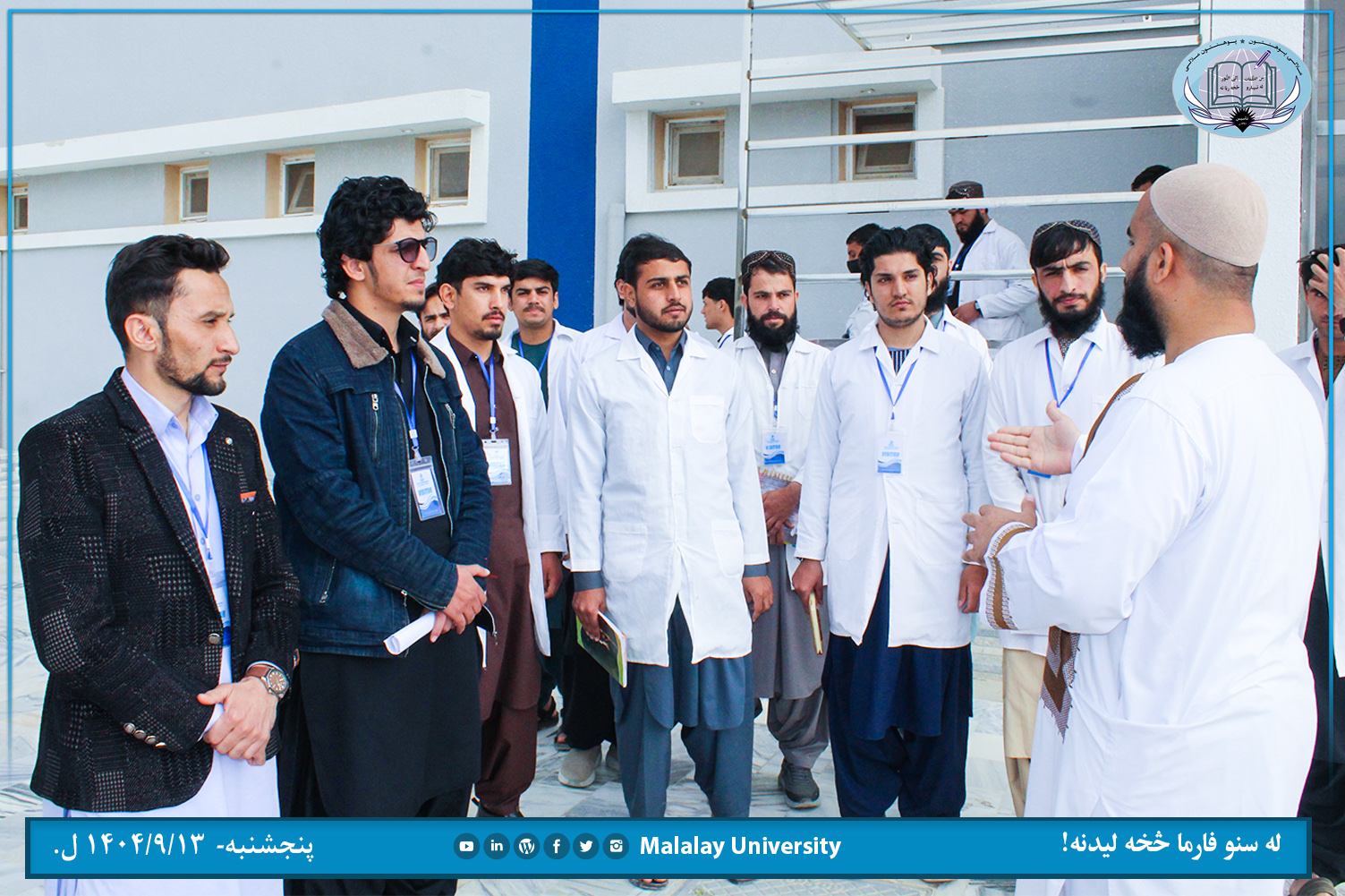 د ملالۍ پوهنتون طب پوهنځي د پلان له مخي د یاد پوهنځي مرستیال ښاغلي ډاکټر محمد یونس سلیمان او د فارمکولوژي مضمون استاد ښاغلي پوهنیار ډاکټر عصمت الله هاشمزي په ملتیا د اتم او نهم سمسټر محصلانو د کندهار له سنو فارما تولیدي فابریکي څخه تیره پنجشنبه (۱۴۰۴/۹/۱۳ ل.) لیدنه وکړه.