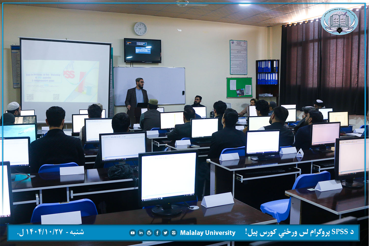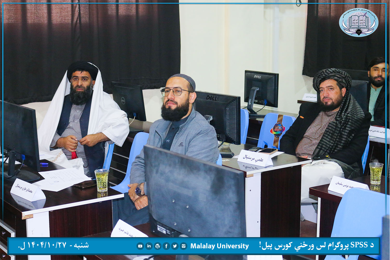 د څېړنیز مرکز د پلان له مخي؛ د مسلکي پرمختیايي مرکز په مرسته نن شنبه (۱۴۰۴/۱۰/۲۷ ل.) د ملالۍ پوهنتون په کمپیوټر لب کي د کندهار پوهنتون اقتصاد پوهنځي رئیس او د مالي او بانکي څانګي استاد ښاغلي پوهنیار عبدالله زیارمل په روزنه د SPSS پروګرام زده کړي لس ورځنی کورس پیل سو.