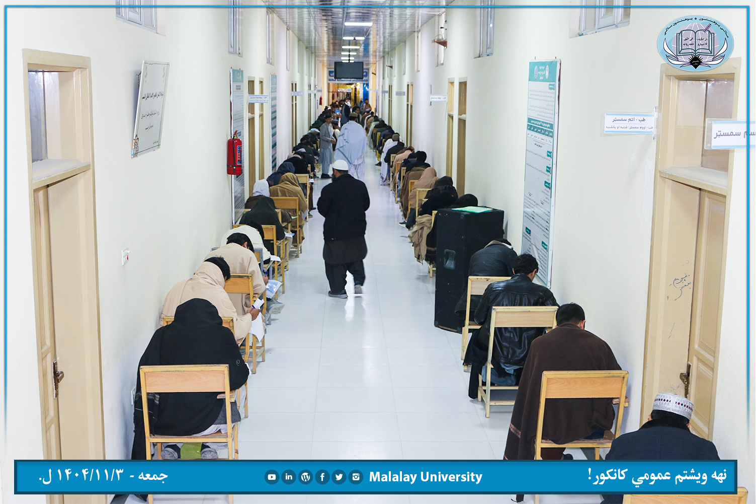 د ملالۍ پوهنتون ۲۹ ام عمومي کانکور له هغو لس ګونو کاندید محصلانو څخه واخیستل سو چي د طب، حقوقو، سیاسي علومو او نړۍ والو اړیکو له پاره یې نوم لیکني کړي وې.