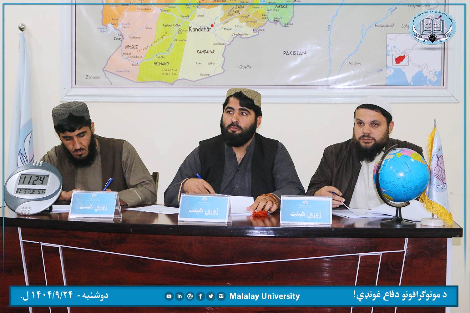 د حقوقو او سیاسي علومو پوهنځي د پلان له مخي پرون دوشنبه (۱۴۰۴/۹/۲۴ ل.) د مناظرې په کلب کي د یاد پوهنځي د ۲۱ مې دورې محصلانو له مونوګرافونو څخه دفاعوې د ژوري هیئت په حضور کي پیل سوې.