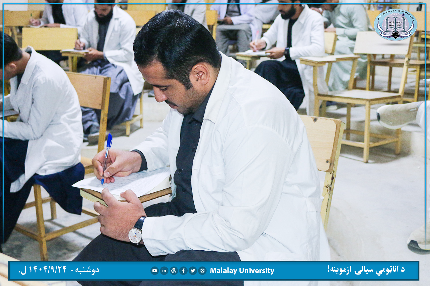 د نصاب او کریکولم اصلي کميټې او طب پوهنځي د پلان له مخي پرون دوشنبه (۱۴۰۴/۹/۲۴ ل.) د عمومي اناټومي سیالۍ تحریري ازموینه واخیستل سوه.
