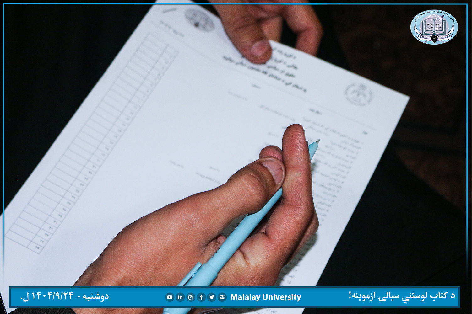 د نصاب او کریکولم اصلي کميټې او حقوقو او سیاسي علومو پوهنځي د پلان له مخي پرون دوشنبه (۱۴۰۴/۹/۲۴ ل.) د کتاب لوستني سیالۍ تحریري ازموینه واخیستل سوه.