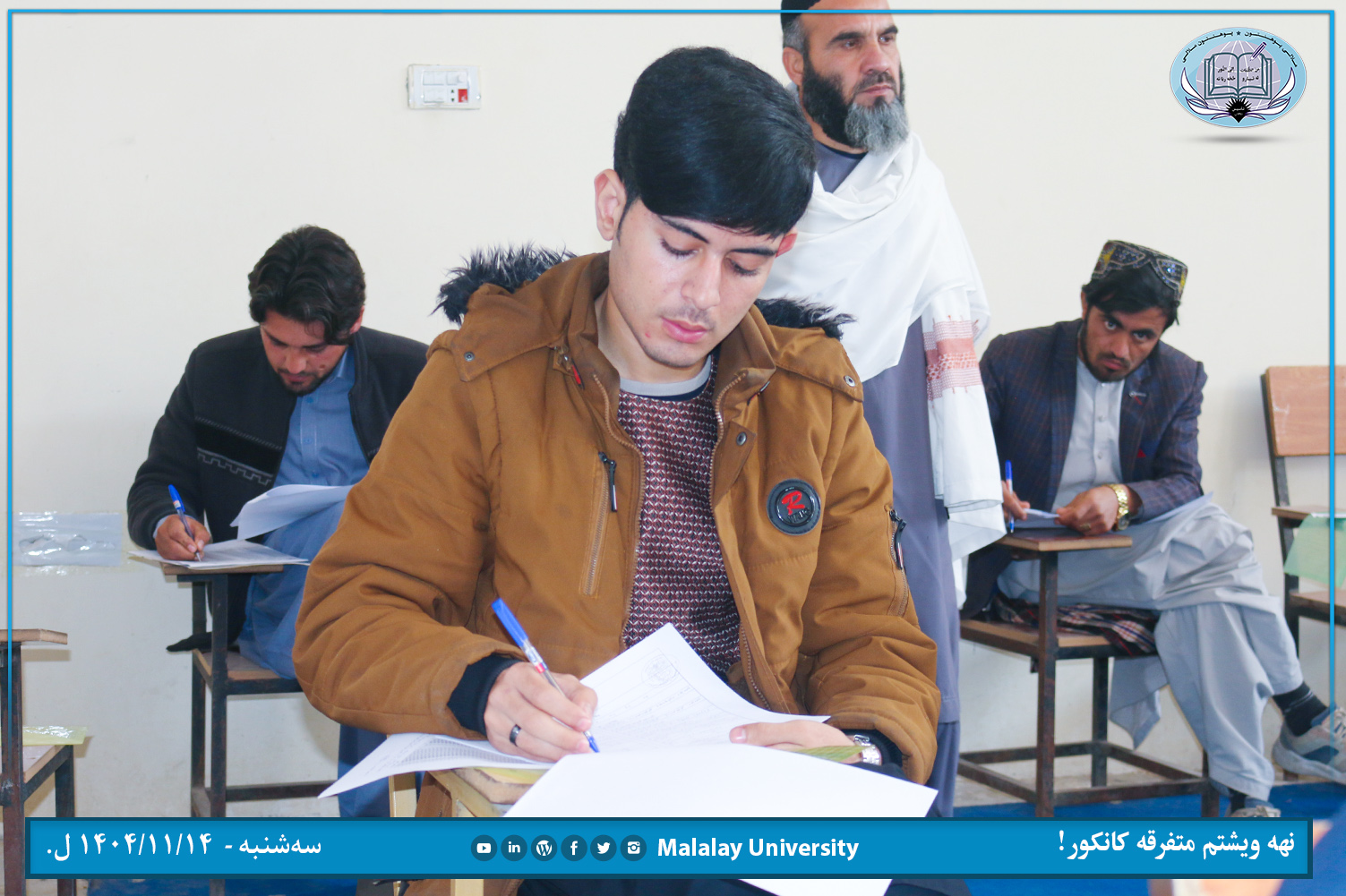 نن سهشنبه (۱۴۰۴/۱۱/۱۴ ل.) د ملالۍ پوهنتون ۲۹ ام متفرقه کانکور له کندهار پوهنتون څخه د راغلي استازي په حضور کي له کاندید محصلانو څخه واخیستل سو.