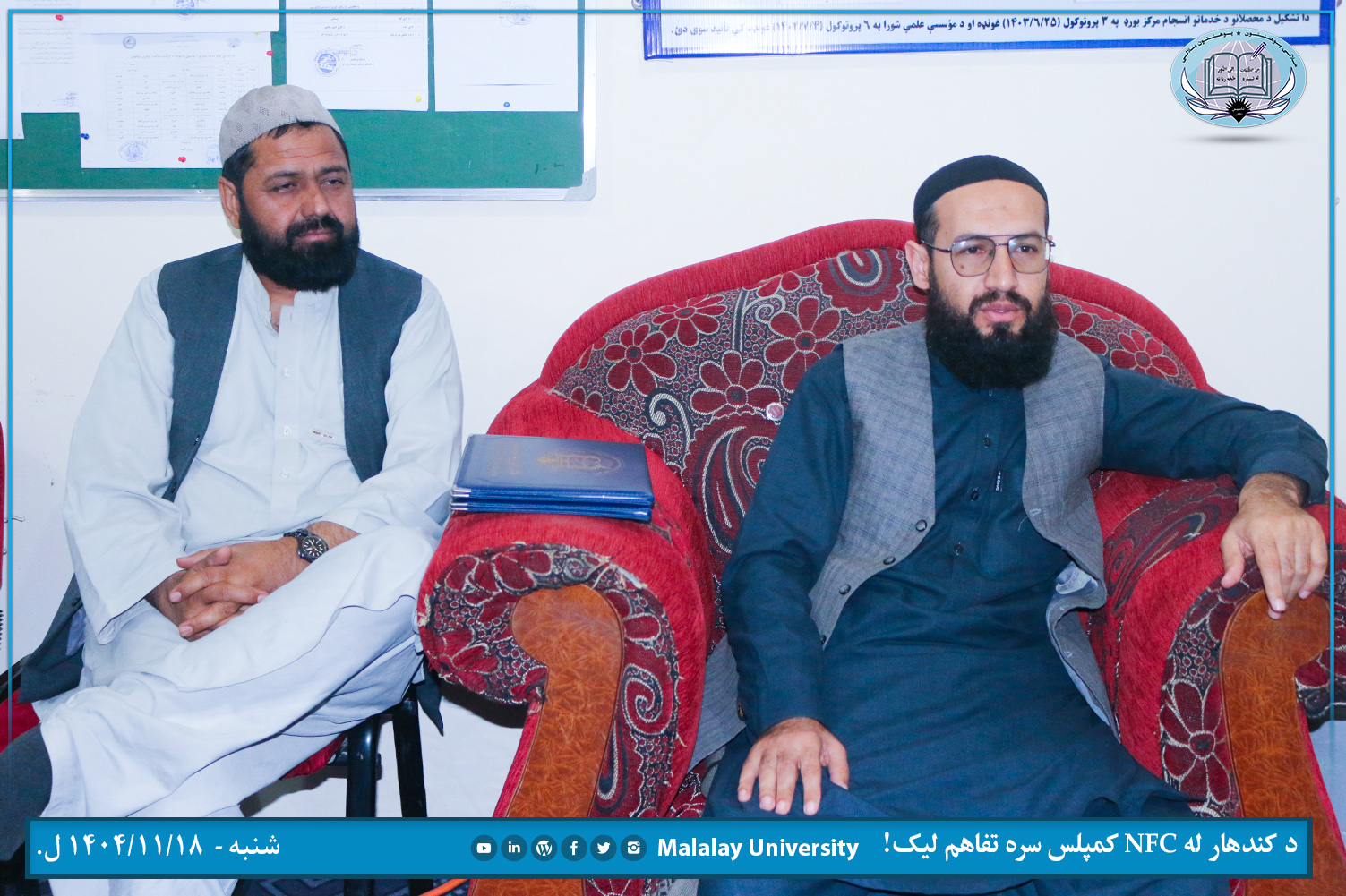 د ملالۍ پوهنتون د محصلانو د خدماتو انسجام مرکز او کندهار NFC کمپلکس ترمنځ د ورزش په برخه کي د همکاریو تفاهم لیک نن شنبه (۱۴۰۴/۱۱/۱۸ ل.) لاسلیک سو.