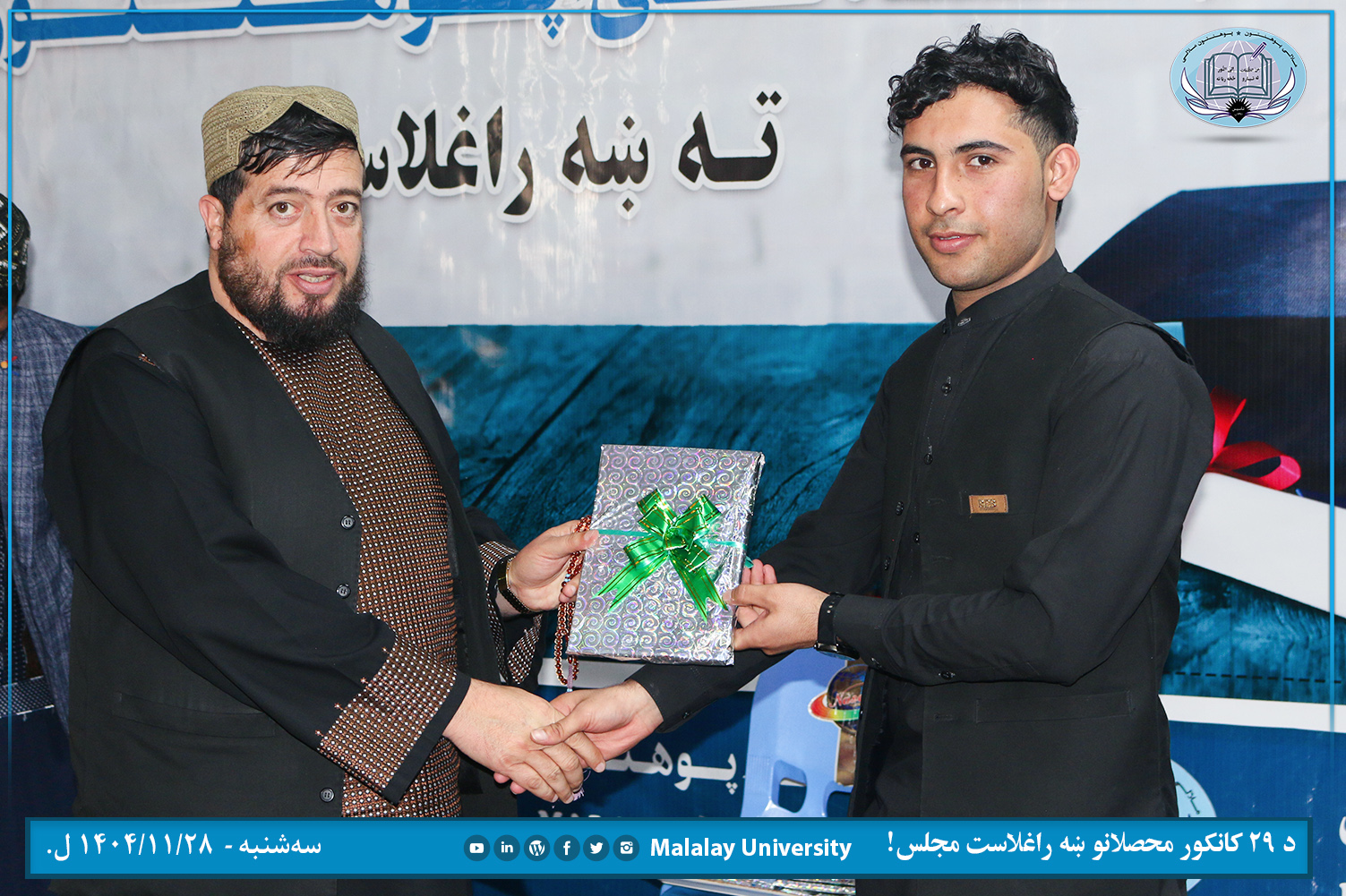 د محصلانو چارو مرستیال ښاغلي ن. پوهنیار محمد الیاس کریمي نوو محصلانو ته د پوهنتوني اخلاقو اړوند معلومات ورکړل، د پوهنتون پېژندني کتاب په اړه وږغېد او له دوی څخه یې وغوښتل تر څو ټول اصول او مقررات مراعات کړي.